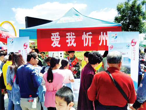 5 月15 日,忻州青年志愿者服務(wù)協(xié)會、愛心公益聯(lián)盟、忻州師院志工部的愛心人士,人員一起來到云中河景區(qū)晉忻夢幻樂園門前,開展“愛我忻州、為家鄉(xiāng)投票”活動,為我市“申旅”助力。活動現(xiàn)場吸引了眾多游客,大家紛紛拿出手機,為美麗的家鄉(xiāng)投票。圖為投票活動現(xiàn)場。(張志遠 攝)