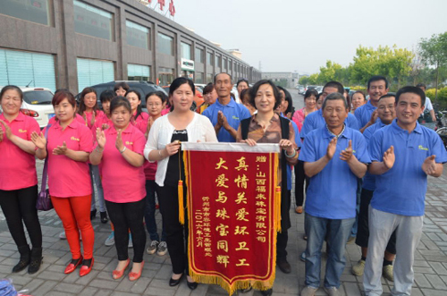 六月七日,忻州知名企業(yè)“山西福來珠寶有限公司”,向忻州市環(huán)衛(wèi)處全體環(huán)衛(wèi)工人捐贈1300件價值近五萬元的T裇衫,供環(huán)衛(wèi)工人夏季作業(yè)避暑,同時呼吁社會各界愛護環(huán)境衛(wèi)生,關愛環(huán)衛(wèi)工人。市環(huán)衛(wèi)處處長石建新、副處長張林霞一同出席捐贈儀式,并代表市環(huán)衛(wèi)處向山西福來珠寶有限公司回贈錦旗,以示感謝。
