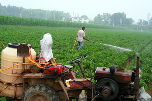 7月11日,原平市南灘村種植的三百畝北京紅辣椒長勢喜人。農(nóng)民們正在田間用電動噴灑器噴灑葉面肥,該肥能增產(chǎn)增效防病害。該村調(diào)整種植產(chǎn)業(yè)結(jié)構(gòu),發(fā)展高效農(nóng)業(yè)種植,促進增產(chǎn)增收。讓農(nóng)民們鼓起錢袋子。(趙春曉 攝)