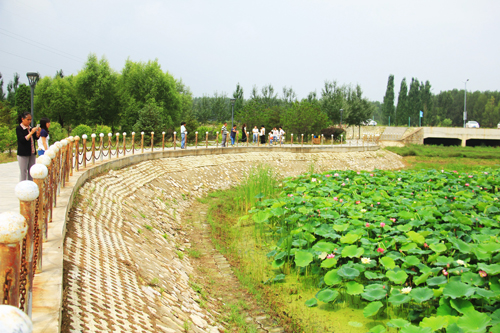 7月21日,原平市滹沱河生態(tài)公園游人正在賞荷花,品味其美麗。七月的荷花,飄香過池,清新自然的氣息,讓人心曠神怡!而在淅淅瀝瀝的細雨后賞荷花,又是一種情境:少了日曬的悶熱,或漫步荷池小道,或跨上拱橋,或合上雨傘,盡情享受雨后的清涼,欣賞池中荷花的千姿百態(tài)。