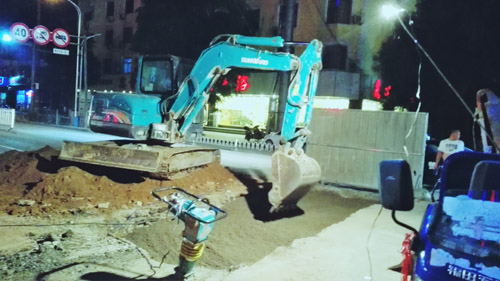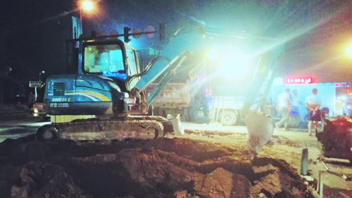 7月26日晚上9多了,原平市政公司干部職工仍然在京原北路與平安大街交匯的十字路口搶修塌陷的路面。該路段是原平的交通要道,車流量大。路面塌陷后,時(shí)政公司及時(shí)安排連夜切段搶修,不誤車輛通行,把“真抓實(shí)干,馬上就辦”體現(xiàn)在實(shí)際行動中。(吉建平 攝)