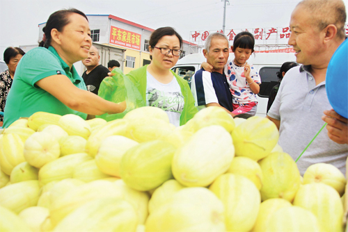 8月21日,原平市民老張正在該市農(nóng)貿(mào)市場銷售香瓜,他的香瓜成了搶手貨,賣了個好價錢。他說,這樣的錯峰種植雖然利潤不小,但要做好計劃,合理利用土地,才能讓土地種植不減收。(吉建平 攝)