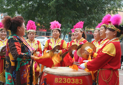 9月26日,原平市姐妹威風(fēng)鑼鼓隊的人員正在敲鑼打鼓慶豐收,進入金秋以來。該市群眾們采取形式多樣豐富多彩的活動來慶豐收