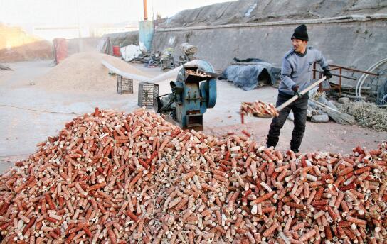 12月14日,原平市文殊莊村菇農(nóng)正在將玉米芯粉碎裝菌袋。該市積極引導(dǎo)農(nóng)民利用玉米芯、鋸末、麩皮等廢料為基料,發(fā)展食用菌種植,并通過成立食用菌種植專業(yè)合作社、引進龍頭企業(yè)進行規(guī)?;?、產(chǎn)業(yè)化經(jīng)營,使當?shù)剞r(nóng)民走上發(fā)展食用菌種植的致富路。(褚震 攝)