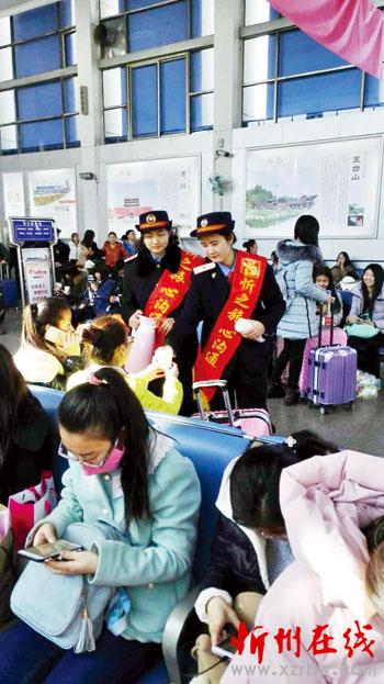 春運第一天,忻州站為確保今年春運旅客運輸組織的安全有序,實現(xiàn)“平安春運、有序春運、溫馨春運”的目標,全面部署,優(yōu)化組織流程,強化重點崗位配置,制訂了相關應急預案,在人力、物力等方面做足了充分準備。圖為工作人員為旅客送水(志遠/文 明強/圖)