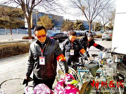 張明亮是市容市貌志愿者監(jiān)督員。老張今年56歲,擔(dān)任城區(qū)市容市貌志愿者監(jiān)督員已經(jīng)三個多月了,主要負(fù)責(zé)長征街君華新天地至日月廣場區(qū)間市容秩序和衛(wèi)生監(jiān)督的工作,每天上午和下午正點上班,檢查臨街店面的門前五包及美化綠化情況,整理亂停亂放的自行車和電動車,告誡過往人員不要亂扔煙頭。老張說,自從忻州城區(qū)創(chuàng)衛(wèi)以來,市民愛護(hù)城市環(huán)境的自覺性有了很大提高,所以自己的大目標(biāo)是經(jīng)過廣大市民的共同努力,城區(qū)創(chuàng)衛(wèi)早日成功。說到小目標(biāo),老張說:“我有兩個孩子,大的已經(jīng)畢業(yè)當(dāng)老師了,在一所技術(shù)學(xué)校上學(xué)的小兒子2017年畢業(yè),希望他能找到一份好工作?!保斆鲝?qiáng))