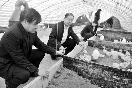 五臺(tái)縣神西鄉(xiāng)蘇家莊村農(nóng)民曲躍堂看著自己在日光溫室飼養(yǎng)的3200只鵝,高興地對(duì)五臺(tái)農(nóng)商銀行神西支行行長(zhǎng)趙曉升說:“多虧你們支持咱科技扶貧貸5萬元,預(yù)計(jì)到5月底,這批肉鵝就能出售,收入48萬元應(yīng)該沒問題。”老曲的養(yǎng)殖目標(biāo)是:今年養(yǎng)鵝1萬只,出欄7000只,年產(chǎn)值突破100萬元。金俊賢 攝