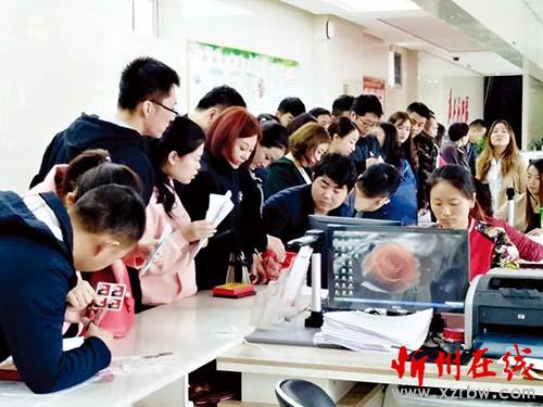 本報訊10月10日,寓意“十全十美、幸福快樂”,一大早,在城區(qū)慕山南路忻府區(qū)政務(wù)大廳前,就有好幾對準(zhǔn)新人等候在那里,準(zhǔn)備領(lǐng)取結(jié)婚證。記者在現(xiàn)場看到,還有一對對準(zhǔn)新人正陸續(xù)走進大廳。