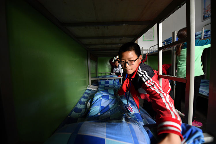 ↑這是學(xué)生在宿舍里整理床鋪(4月18日攝)。新華社記者詹彥攝