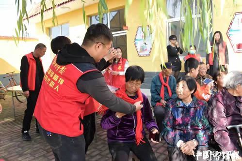 老人們開(kāi)心吃著飯,看著表演,還跟志愿者們開(kāi)心的聊天,老人們滿是褶皺的臉洋溢出幸福滿足的笑容,拉著志愿者的手說(shuō)有你們真好,今年的重陽(yáng)節(jié)比過(guò)年都熱鬧。