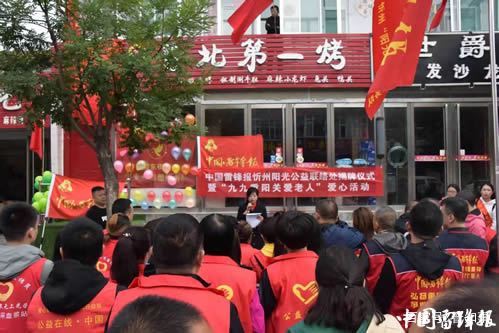 秋風(fēng)送爽,丹桂飄香。10月7日,中國(guó)雷鋒報(bào)忻州區(qū)雷鋒工作站陽(yáng)光公益聯(lián)絡(luò)處在九九重陽(yáng)之際舉行揭牌授旗儀式,這標(biāo)志著忻府區(qū)陽(yáng)光公益服務(wù)隊(duì)志愿者們?cè)诹昴サZ中不斷成長(zhǎng)壯大,最終融入到《中國(guó)雷鋒報(bào)》這個(gè)大家庭當(dāng)中,爭(zhēng)當(dāng)雷鋒精神的種子,把雷鋒精神廣播在祖國(guó)大地上。