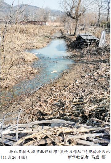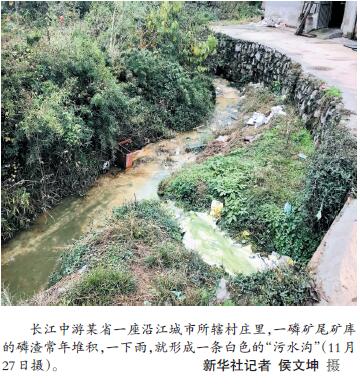 而在離城區(qū)稍遠(yuǎn)的農(nóng)村,部分不法村鎮(zhèn)小作坊等污水違規(guī)排放時(shí)有發(fā)生。檢查組發(fā)現(xiàn),長江中游某省一座沿江城市所轄村莊里,一磷礦尾礦庫的磷渣常年堆積,一下雨,就形成一條白色的“污水溝”。檢查組在華北某特大城市北部遠(yuǎn)郊一村中實(shí)地檢查時(shí)發(fā)現(xiàn),該村“黑洗衣作坊”違規(guī)偷排污水,污染環(huán)境。