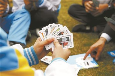 學生們在玩田精耘發(fā)明的“英語撲克”。劉磊 攝