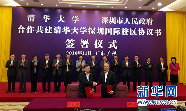 新華網(wǎng)北京11月4日電 今日,清華大學(xué)與深圳市人民政府在廣州簽署協(xié)議,在清華大學(xué)深圳研究生院、清華-伯克利深圳學(xué)院的辦學(xué)基礎(chǔ)上,進(jìn)一步深化合作、拓展升級(jí),共建清華大學(xué)深圳國(guó)際校區(qū)(Tsinghua University Shenzhen Global Campus, TUSGC,以下簡(jiǎn)稱“國(guó)際校區(qū)”)。中共中央政治局委員、廣東省委書(shū)記胡春華,廣東省委副書(shū)記、省長(zhǎng)朱小丹,廣東省委副書(shū)記、深圳市委書(shū)記馬興瑞,清華大學(xué)黨委書(shū)記陳旭等出席簽字儀式,清華大學(xué)校長(zhǎng)邱勇和深圳市長(zhǎng)許勤代表雙方簽署了合作協(xié)議。