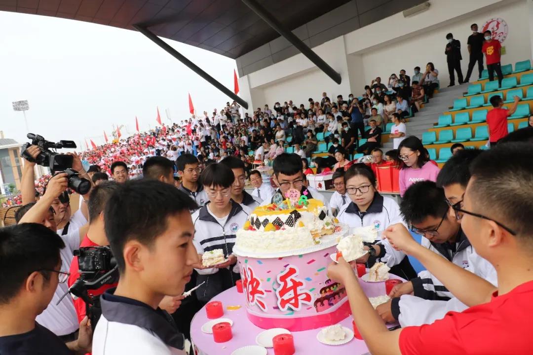 十八歲,成年成人;十八歲,成長成才。學校每年在這個時候都會為學子們舉行集體生日,家長們則為每個班準備了生日蛋糕,在父母、師長的見證和祝福下,同學們走向人生的新階段。年級主任解鴻志、張高強老師共同推來一個巨型蛋糕,老師們一齊向學生祝福,校領導共同為學生點燃生日蠟燭,伴隨著《生日快樂》的歌聲,同學們雙目微閉,雙手合十,面對父母、師長,面對自己憧憬的未來,默默許下美好愿望。