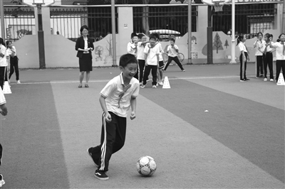 朝陽區(qū)實驗小學(xué)學(xué)生在操場參加課后體育鍛煉