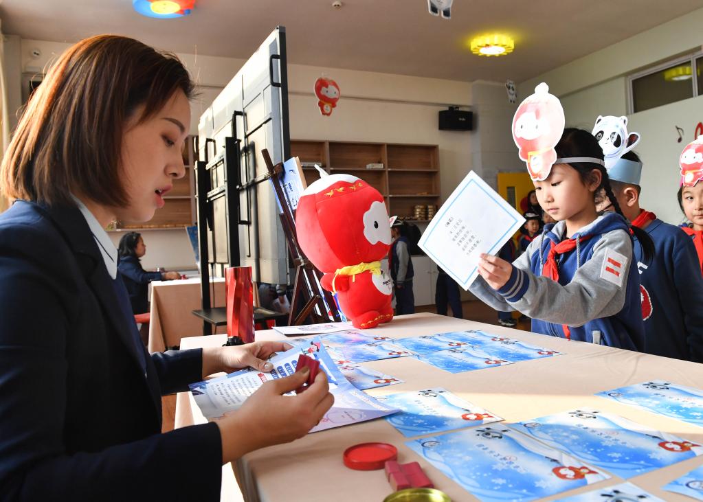 1月4日,在太原市新建路小學(xué),小學(xué)生們展示自己闖關(guān)答題的成績(jī)單。新華社記者 柴婷 攝