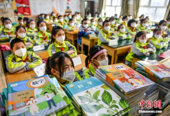 資料圖:新疆烏魯木齊市第四十二小學(xué),學(xué)生們等待領(lǐng)取新課本。中新社記者 劉新 攝
