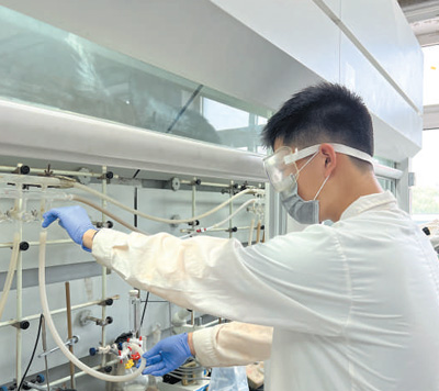 北京市第四中學(xué)學(xué)生張子鳴在北京師范大學(xué)有機化學(xué)實驗室做實驗。
