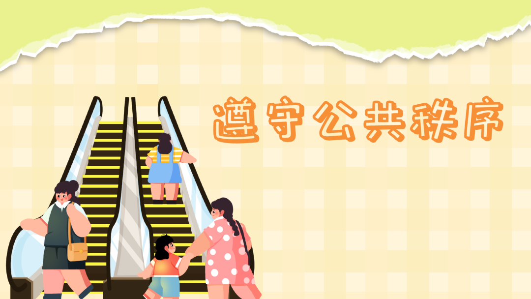 乘自動扶梯抓好扶手,留意前方,注意腳下。遇到人流擁擠要鎮(zhèn)定,注意躲避,避免摔跤,不逆人流行走。遇到突發(fā)事件不慌張,要聽從工作人員指揮或沿安全通道有序撤離。