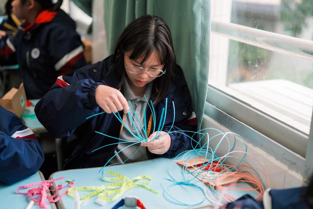 在廈門雙十中學開設(shè)的藤編課上,學生們發(fā)揮創(chuàng)意編制籃筐。(雙十中學供圖)