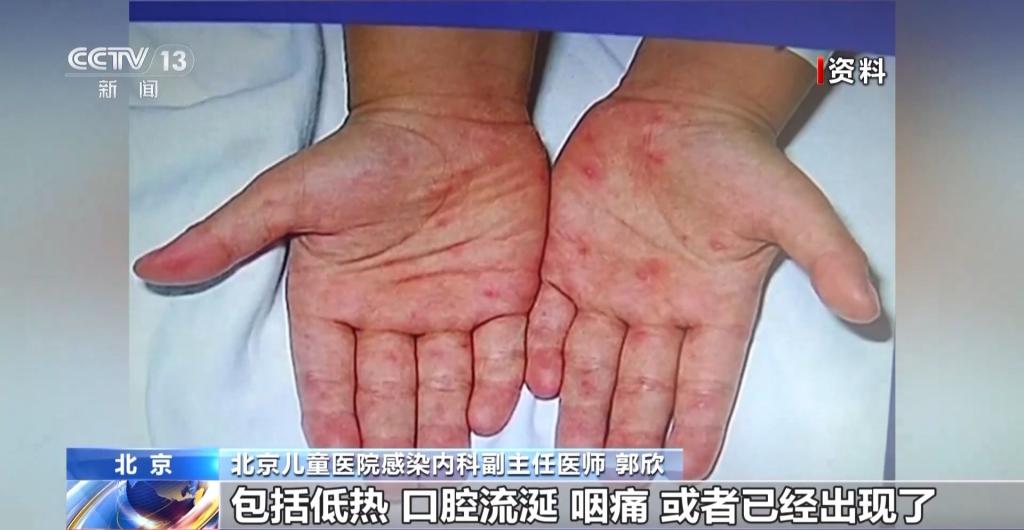 北京兒童醫(yī)院感染內(nèi)科副主任醫(yī)師 郭欣:通過一些蛛絲馬跡來早期發(fā)現(xiàn),可以去仔細(xì)觀察孩子的口腔、皮膚的黏膜,通常典型的癥狀就是累及手部、腳部,還有孩子的小屁屁上,可能會(huì)出現(xiàn)小紅點(diǎn)。在潛伏期3—5天之后,孩子可能早期會(huì)出現(xiàn)一些包括低熱、口腔流涎、咽痛,或者已經(jīng)出現(xiàn)了手足或者臀部的這種皮疹,這樣如果出現(xiàn)這樣的癥狀,家長(zhǎng)就一定要注意孩子可能罹患了手足口病。