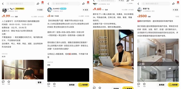 據(jù)統(tǒng)計(jì),大賽共吸引超過(guò)100名學(xué)生參與,在二手交易平臺(tái)閑魚(yú)掛出“特色商品”近500個(gè),且9成商品均為“0成本”商品,如“跑腿類(lèi)”的代取快遞、食堂帶飯,“監(jiān)督類(lèi)”的期末復(fù)習(xí)監(jiān)督、考研搭子等。也有不少同學(xué)發(fā)掘了自己“技能”的價(jià)值,如粵語(yǔ)教學(xué)、彈吉他教學(xué)、魔術(shù)教學(xué)等特長(zhǎng)類(lèi)商品,掛出超過(guò)60個(gè),累計(jì)咨詢(xún)量超過(guò)100次,成交量超過(guò)20單。