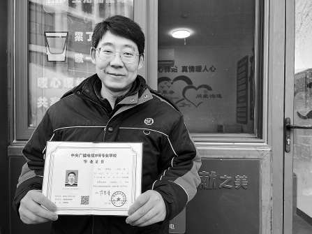 聽說學(xué)員通過考試后可以獲得國家承認的成人中專畢業(yè)證書,學(xué)習(xí)費用全部由街道補貼,蔣風(fēng)登立刻動了心。在工作人員的幫助下,他報名學(xué)習(xí)計算機應(yīng)用專業(yè),開始了半工半讀的生活。晚上下班回到家,他一遍遍地刷著網(wǎng)課;白天,他利用送快遞的間隙鞏固知識點。經(jīng)過一年的學(xué)習(xí),2024年3月,他順利拿到了畢業(yè)證。