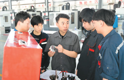 校中廠,有啥好?智能制造系教師付貴臣隨手拿起一旁的零件舉例:此前,學(xué)校因設(shè)備限制一直采用立銑工藝,零件加工出來,總有一圈圈亮閃閃的刀紋。跟中品機(jī)械合作后,學(xué)生們才知道,原來大型企業(yè)用的是臥銑工藝,一刀銑下來,紋路沒了,零件光滑又漂亮。