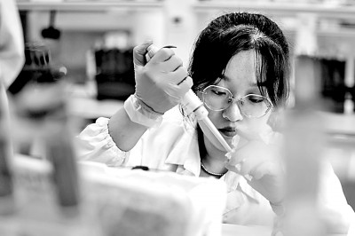 上海海洋大學(xué)水產(chǎn)養(yǎng)殖專(zhuān)業(yè)的博士研究生王賀在導(dǎo)師指導(dǎo)下研究遺傳育種。新華社發(fā)