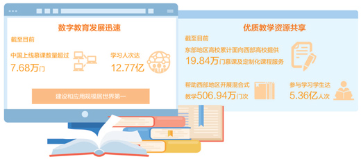 我國(guó)近年來(lái)大力推進(jìn)國(guó)家教育數(shù)字化戰(zhàn)略行動(dòng)。截至目前,上線慕課數(shù)量超過(guò)7.68萬(wàn)門,學(xué)習(xí)人次達(dá)12.77億,建設(shè)和應(yīng)用規(guī)模居世界第一,教育的公共服務(wù)能力顯著增強(qiáng)。