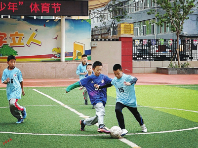 當(dāng)天下午,太原市雙東小學(xué)的大課間鈴聲準(zhǔn)時(shí)響起——“走,練射門去!”六年級學(xué)生張浩宇一把抓起足球,和隊(duì)友們直奔操場。上、下午各30分鐘的陽光大課間正有序開展,韻律操、武術(shù)操的音樂響徹校園。