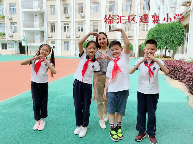 小育走進徐匯區(qū)梅隴幼兒園,和萌萌噠小盆友比心(小育扮演者:趙旭華 攝影:宿銘珊)