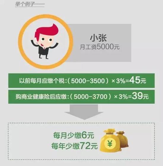 也就是說,如果你購買的保險每個月分?jǐn)傁聛沓^200元,其實(shí)是相當(dāng)于你的個稅起征點(diǎn)提高了200元。