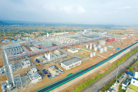 同德科創(chuàng)BDO化工基礎(chǔ)原料暨PBAT新材料產(chǎn)業(yè)鏈一體化項(xiàng)目建設(shè)現(xiàn)場(chǎng)。馮曉磊攝