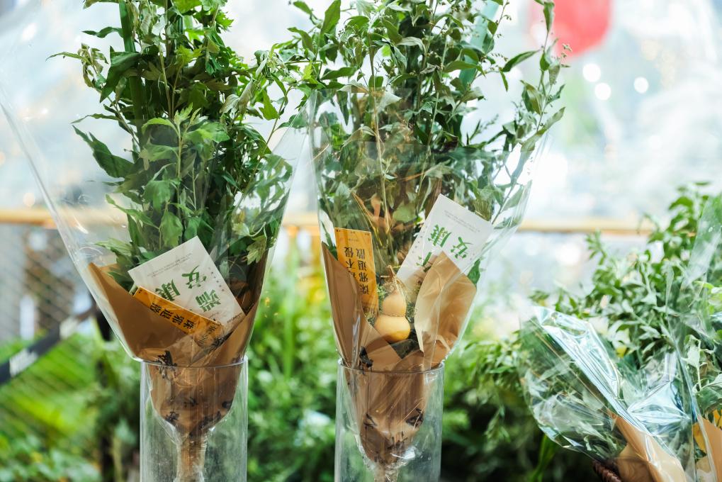 端午假期,重慶光環(huán)購物公園內(nèi)派發(fā)的艾草花束。(受訪者供圖)