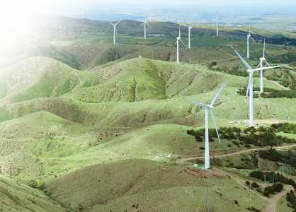 壯美如畫的山嶺風(fēng)力發(fā)電圖。陳榮燁攝