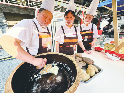 9月3日傍晚,太原鐘樓街,來自嵐縣的廚師正在制作當(dāng)?shù)靥厣朗惩炼埂澳酶狻?。近日,隨著“跟著悟空游山西”的持續(xù)升溫,太原鐘樓街吸引了眾多游客,品嘗富有山西特色的美食成為人們打卡鐘樓街的主要內(nèi)容。