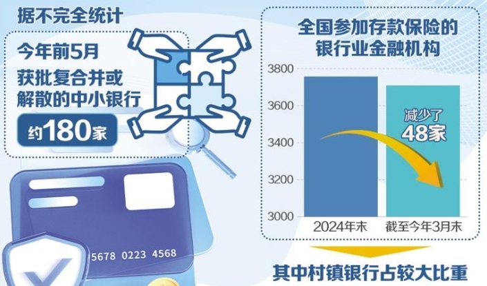 中小銀行是我國金融體系的重要組成部分,也是推動區(qū)域經(jīng)濟發(fā)展和服務(wù)實體經(jīng)濟的生力軍。今年以來,我國中小銀行改革重組步伐加快,多地的村鎮(zhèn)銀行、農(nóng)商銀行等金融機構(gòu)被吸收合并重組,將在金融機構(gòu)名單上加速消失。據(jù)不完全統(tǒng)計,今年前5月,約180家中小銀行獲批復(fù)合并或解散。