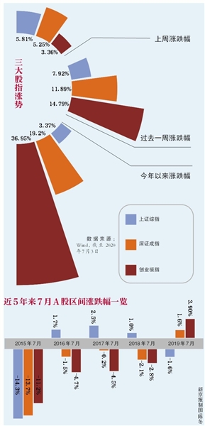 “我準備加倉,感覺現(xiàn)在股市行情一路見漲?!币晃还擅窀嬖V新京報記者,在剛剛過去的7月第一周,他投的券商股已經(jīng)為他帶來1萬多的收益。 隨著上證指數(shù)站上3100點,A股走出“牛市格局”成了最熱話題。實際上,進入7月,市場做多情緒高漲,新增投資者跑步進場。有投資者認為,牛市的號角被券商股吹響,A股又到了一年一度“七翻身”的時刻。 對此,有分析稱A股的韌性和獨立性有望延續(xù),不過下半年既不會進入熊市狀態(tài),也不會進入牛市狀態(tài)。 目前釋放了什么牛市信號? 個別股民“下場撿錢”最明顯的表現(xiàn),就是7月首周A股交易量明顯放大。上周,兩市合計成交量連續(xù)兩個交易日超過萬億元。據(jù)wind數(shù)據(jù)統(tǒng)計,A股總市值一周內(nèi)增長近3.8萬億元。 兩融方面,截至7月2日,A股融資融券余額為11903.15億元,較前一交易日增加140.38億元,連續(xù)三天單日增幅超100億元,累計增長約500億元。 此外,北上資金也在大幅加倉,一周內(nèi)凈流入288.62億元,數(shù)據(jù)統(tǒng)計,今年年初以來,北上資金凈流入超過1400億元。 資金“瘋狂”流入的同時,是投資者的加入和回歸。新京報記者從一頭部券商處了解到,6月下旬以來,新增投資者數(shù)量明顯上升,“現(xiàn)在幾乎都是線上自助開戶,所以營業(yè)部狀況還好,沒有出現(xiàn)網(wǎng)上傳說的人滿為患的情況。”一券商營業(yè)部工作人員劉瑞(化名)告訴記者。 根據(jù)中國結(jié)算官網(wǎng)公布的數(shù)據(jù),盡管6月數(shù)據(jù)尚未公布,但5月已有大量新股民涌入市場。當月新增投資者賬戶數(shù)量121.41萬個。具體來看,新增自然人賬戶121.25萬個,同比增長5.34%。截至2020年5月末,投資者賬戶數(shù)量合計1.66億個,其中自然人1.658億個,非自然人39.35萬個。 除了新股民外,一些老股民也蠢蠢欲動。“僵尸賬戶如何解凍”這個問題劉瑞在最近和多位老客戶溝通中被問及,“有的老客戶在2017年前后被確認為休眠賬戶,就在前幾天找到我想要重新激活,再下場搏一搏”。 “七翻身”是否有道理? 此次牛市“刷屏”,一定程度上是人們對于7月A股“乘風破浪”的期待。有分析稱,牛市的號角已由券商股吹響,被稱作“牛市發(fā)動機”的券商板塊在7月首個交易周中大放異彩。據(jù)wind統(tǒng)計,券商指數(shù)在5個交易日內(nèi)漲幅達到17.85%,在全部板塊中位列第二;年初至今,券商指數(shù)漲幅為15.29%。從個股來看,年初至今,券商股中漲幅最高的個股東方財富漲幅高達73.82%,光大證券、中信建投、國金證券年內(nèi)漲幅超過50%。 曾經(jīng)被總結(jié)為“五窮六絕七翻身,金九銀十”的說法到底準不準? 新京報記者統(tǒng)計了2010年7月-2019年7月間的數(shù)據(jù)發(fā)現(xiàn),事實上,指數(shù)在過去的10年中上漲與下跌的各約占半數(shù)。其中,滬指方面,近10年里,滬指6次在7月出現(xiàn)上漲,4次出現(xiàn)下跌。2010年7月為近10年的7月里上漲幅度最高的一年,漲幅為9.97%;2015年7月,滬指大幅下跌14.34%,是十年中7月跌幅最高的一年。 此外,深指方面,近10年中,深指出現(xiàn)4次上漲,2010年7月漲幅14.90%,為漲幅最高的一年;出現(xiàn)6次下跌,2015年7月13.70%的跌幅是10年中最大跌幅。 不過,從股票成交金額來看,盡管多數(shù)時間內(nèi)7月的A股交易金額并未成為當年最高峰,但在過去的10年中,僅有2015年7月環(huán)比下降,其他年份中,均較上月有不同程度的上升。 而從橫向?qū)Ρ葋砜?,今年的A股市場還未出現(xiàn)“五窮六絕”的現(xiàn)象。在經(jīng)歷了年初的大幅下滑后,4月來A股市場就開始逐漸回暖。A股指數(shù)表現(xiàn)普遍優(yōu)于全球主要指數(shù)。截至北京時間6月30日收盤,創(chuàng)業(yè)板指上半年上漲35.60%,在全球重要指數(shù)中排列第一,深證成指以14.97%的漲幅位居第二,納斯達克指數(shù)上半年上漲10.05%居于第三,上證指數(shù)下跌2.15%位于第四。 A股“復蘇牛”要來了? “牛市的話,我們一直是看好復蘇?!?,自上半年至今一直堅定看多A股的安信證券首席策略分析師陳果這樣認為。 分析師稱,當前背景是全球流動性泛濫且近期看不到明顯收緊,中國經(jīng)濟數(shù)據(jù)持續(xù)超預期,且市場可預期未來一年中國經(jīng)濟與企業(yè)盈利同比增速將走向高增長,這是A股“復蘇?!边壿?,這也是全面牛市邏輯?!凹词谷媾J校惨廊皇怯兄骶€,我們認為A股的主線,科技醫(yī)藥消費并沒有被根本動搖,除非牛市結(jié)束,那需要出現(xiàn)流動性顯著收緊或者外部極端事件”。 粵開證券策略分析師康崇利團隊展望7月市場,認為A股的韌性和獨立性有望延續(xù)。多重政策紅利護航下,有望穩(wěn)定市場預期,緩解個股在7月激增的解禁壓力。 對此,中南財經(jīng)政法大學數(shù)字經(jīng)濟研究院執(zhí)行院長盤和林告訴新京報記者,股民的熱情更多是被市場氛圍帶動,而一般券商股走強,則說明市場進入一輪上漲趨勢當中。券商對股市周期以及資金和政策松緊最為敏感,所以這種熱情是正常現(xiàn)象。 他認為,市場進入走強趨勢,資金推動因素為主,經(jīng)濟實體向好為輔?,F(xiàn)階段市場流動性充裕,一方面因為全球貨幣寬松,資金更多地體現(xiàn)為流入,另一方面國內(nèi)總體也進入了周期上行階段,豬肉價格最近也有一定程度上漲。實體經(jīng)濟的周期帶動股市周期一起表現(xiàn)。 
