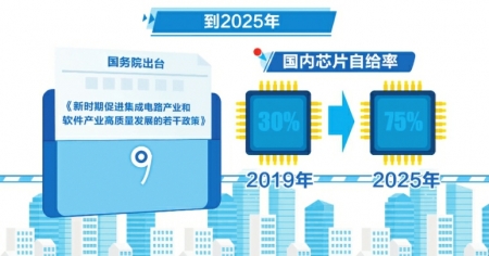今年8月初,國務(wù)院出臺了《新時期促進集成電路產(chǎn)業(yè)和軟件產(chǎn)業(yè)高質(zhì)量發(fā)展的若干政策》,提出到2025年,國內(nèi)芯片自給率從2019年的30%達到75%。對于制程小于28納米,經(jīng)營期15年以上的頭部企業(yè),最高可享受十年的免稅期。