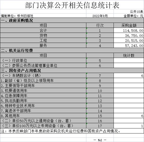 十、部門決算公開相關(guān)信息統(tǒng)計表