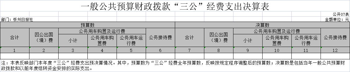 說明:忻州日報社沒有一般公共預(yù)算財政撥款“三公經(jīng)費”安排的支出,故本表無數(shù)據(jù)。