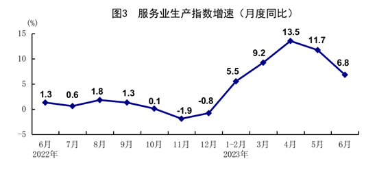 上半年,服務(wù)業(yè)增加值同比增長(zhǎng)6.4%,比一季度加快1.0個(gè)百分點(diǎn)。其中,住宿和餐飲業(yè),信息傳輸、軟件和信息技術(shù)服務(wù)業(yè),租賃和商務(wù)服務(wù)業(yè),金融業(yè),批發(fā)和零售業(yè)增加值分別增長(zhǎng)15.5%、12.9%、10.1%、7.3%、6.6%。6月份,服務(wù)業(yè)生產(chǎn)指數(shù)同比增長(zhǎng)6.8%。其中,住宿和餐飲業(yè),信息傳輸、軟件和信息技術(shù)服務(wù)業(yè),租賃和商務(wù)服務(wù)業(yè)生產(chǎn)指數(shù)分別增長(zhǎng)20.0%、15.4%、9.3%。1-5月份,全國(guó)規(guī)模以上服務(wù)業(yè)企業(yè)營(yíng)業(yè)收入同比增長(zhǎng)8.5%。6月份,服務(wù)業(yè)商務(wù)活動(dòng)指數(shù)為52.8%,業(yè)務(wù)活動(dòng)預(yù)期指數(shù)為60.3%。其中,航空運(yùn)輸、郵政快遞、電信廣播電視及衛(wèi)星傳輸服務(wù)、貨幣金融服務(wù)、保險(xiǎn)等行業(yè)商務(wù)活動(dòng)指數(shù)均位于60.0%及以上高位景氣區(qū)間。