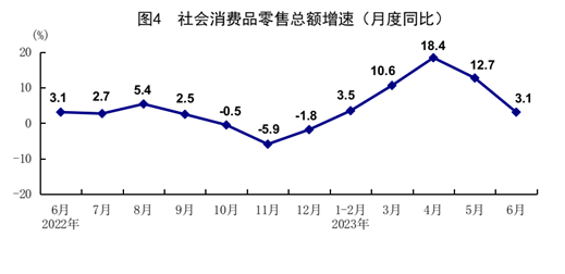 上半年,社會(huì)消費(fèi)品零售總額227588億元,同比增長(zhǎng)8.2%,比一季度加快2.4個(gè)百分點(diǎn)。按經(jīng)營(yíng)單位所在地分,城鎮(zhèn)消費(fèi)品零售額197532億元,同比增長(zhǎng)8.1%;鄉(xiāng)村消費(fèi)品零售額30056億元,增長(zhǎng)8.4%。按消費(fèi)類型分,商品零售203259億元,增長(zhǎng)6.8%;餐飲收入24329億元,增長(zhǎng)21.4%?;旧铑惿唐蜂N售穩(wěn)定增長(zhǎng),限額以上單位服裝鞋帽針紡織品類、糧油食品類商品零售額分別增長(zhǎng)12.8%、4.8%。升級(jí)類商品銷售較快增長(zhǎng),限額以上單位金銀珠寶類、體育娛樂用品類、化妝品類商品零售額分別增長(zhǎng)17.5%、10.5%、8.6%。全國(guó)網(wǎng)上零售額71621億元,同比增長(zhǎng)13.1%。其中,實(shí)物商品網(wǎng)上零售額60623億元,增長(zhǎng)10.8%,占社會(huì)消費(fèi)品零售總額的比重為26.6%。6月份,社會(huì)消費(fèi)品零售總額同比增長(zhǎng)3.1%,環(huán)比增長(zhǎng)0.23%。