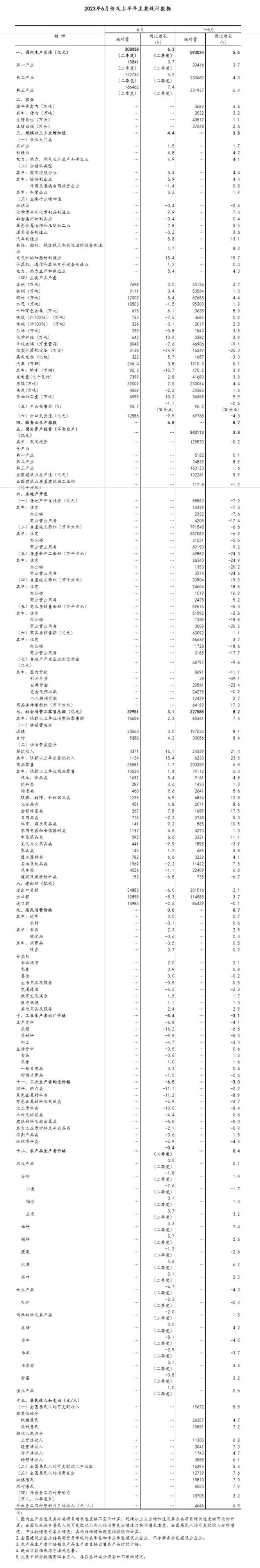 (1)國(guó)內(nèi)生產(chǎn)總值及其分類項(xiàng)目增長(zhǎng)速度按不變價(jià)計(jì)算,規(guī)模以上工業(yè)增加值及其分類項(xiàng)目增長(zhǎng)速度按可比價(jià)計(jì)算,均為實(shí)際增長(zhǎng)速度;其他指標(biāo)除特殊說明外,按現(xiàn)價(jià)計(jì)算,為名義增長(zhǎng)速度。