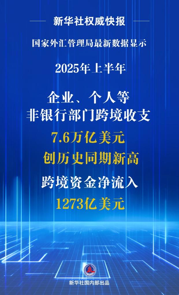 上半年我國(guó)非銀行部門跨境資金凈流入1273億美元