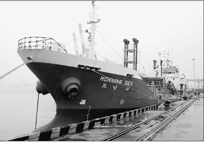 中國海關(guān)根據(jù)二〇一五年上半年雙邊貿(mào)易量靜態(tài)估算,中韓自貿(mào)協(xié)定生效一年內(nèi),將有二百六十億美元中國出口貨物和二百億美元的韓國出口貨物在對方享受關(guān)稅優(yōu)惠。圖為去年十二月二十日,中韓自貿(mào)協(xié)定生效當(dāng)日,載有兩千六百噸液體硫磺的韓國貨輪“晨海號”正在免稅通關(guān)。新華社發(fā)