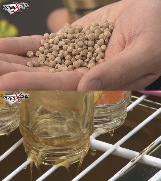 濟州島不法商家高價銷售給中國游客等外國游客的假冒偽劣馬骨丸(上圖)和油菜花蜜(下圖)/CHANNEL A《食物X檔案》畫面截圖