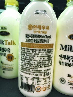 在北京某高端超市,最為集中的原裝進口奶來自于韓國,南陽牧場牛奶、延世牧場牛奶、濟州樂活牛奶三款牛奶是超市銷售人員介紹的產(chǎn)品中賣得最火的。不過,這三款牛奶有一個共同的特點,就是產(chǎn)品類型均為調(diào)制乳。